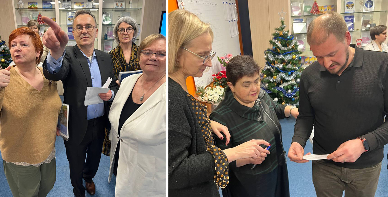 WISE Baltijas uzņēmēju kluba priekšsēdētājs Aleksandrs Konstantinovs un klienta uzņēmuma pārstāve Anita Trumpika sveica koledžu, nododot dāvanas tās bibliotēkai.