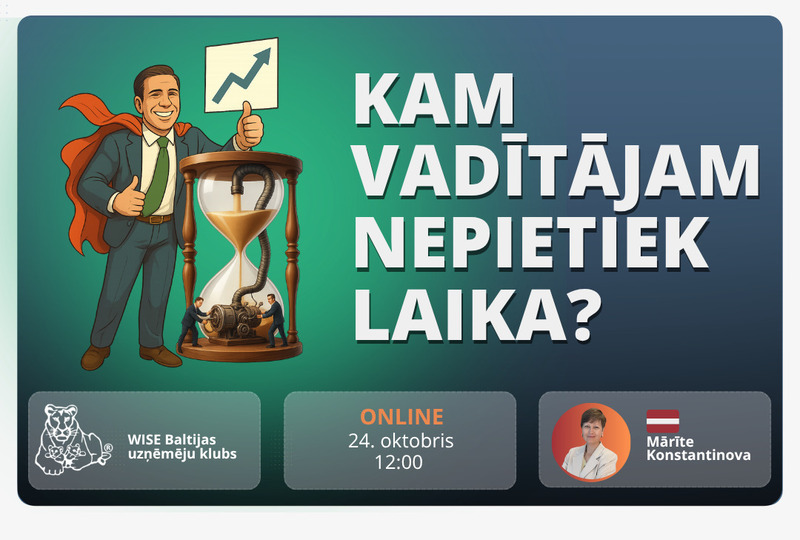 Mūsu izvēlētā vebināra tēma: «Kam vadītajam nepietiek laika?». First Baltic Hubbard College of Administration izpilddirektore pastāstīja, kā ar Hubbard Management System palīdzību vadītājs var atgūt laiku sev un savam biznesam.